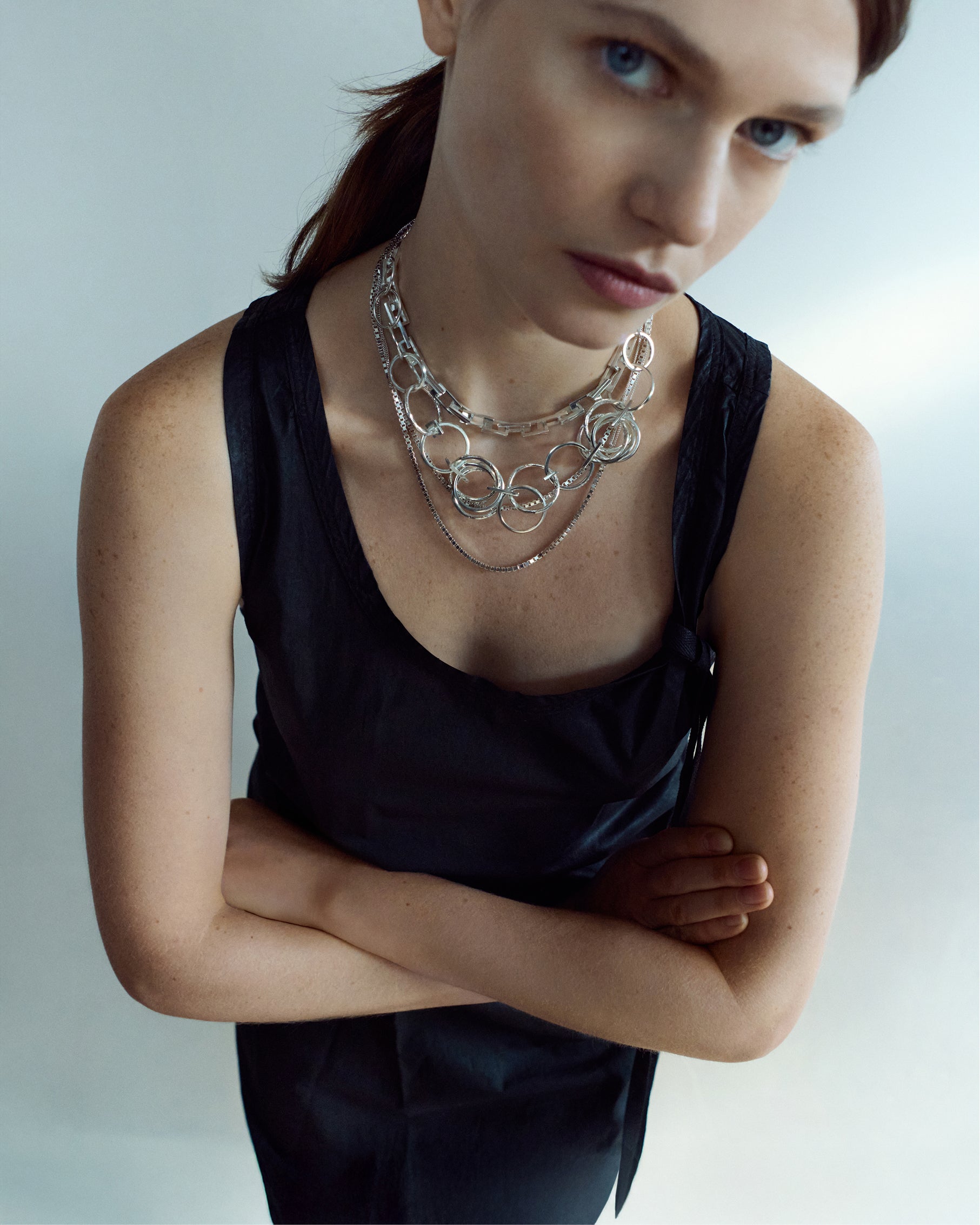 Graphic lines remain at the core, now softened by rounded, organic forms that introduce subtle fluidity and warmth. The collection balances strength and femininity, structure and elegance.
