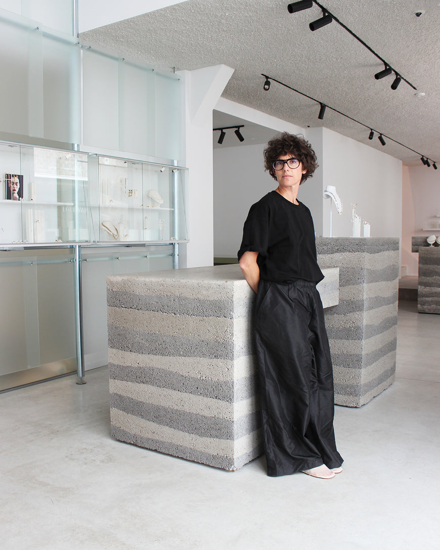 Belgian designer Lore Van Keer (1985) originally trained as an interior designer at LUCA School of Arts Brussels, focusing on product design. Her continued fascination for honing and making new objects grew into a fondness for jewellery, while keeping design and architecture as primary sources of inspiration. Ever since founding her namesake label in 2010, Lore Van Keer has created her own boundary-blending aesthetic of abstract and architectural pieces for confident wearers across generations.