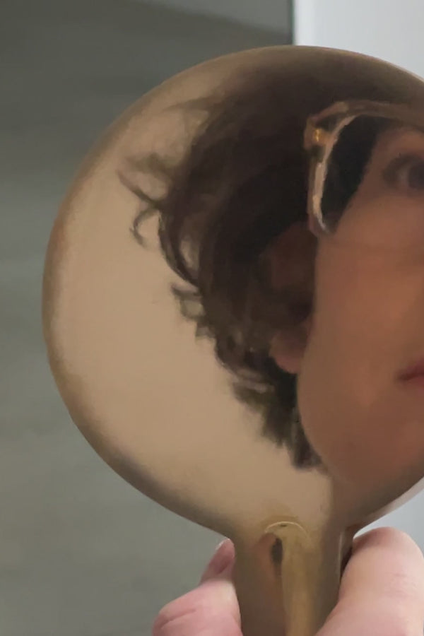 Together they designed a solid bronze hand mirror. Classical in shape yet contemporary in finish, it carries a subtle hollow, the result of wax caving in as it sets, a “perfect imperfection” Ann Vincent often embraces. Made with the lost-wax technique and partly polished to a mirror shine, the piece is both functional and sculptural: heavy in material, refined in presence. For Lore, it also holds personal meaning: a nod to the small mirror that once sat on her studio table, symbolizing the very beginnings of her brand. Fifteen years later, that intimate starting point has grown into a universe of craftsmanship. A mirror that reflects more than an image, it embodies a shared vision of perfect imperfection, intuition, and timelessness.